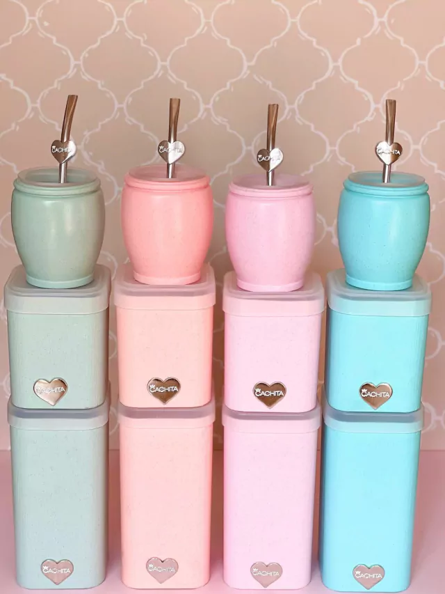 Set Cuadrado Nevado Rosa: yerbero, azucarero y mate!